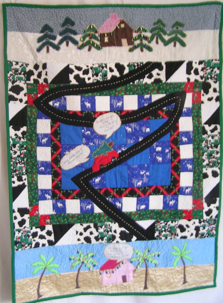 Today’s art is “Over the Mountains, Across the Plains, to Grandma’s House We Go.” This is a playful piece depicting a family’s adventures of driving cross country to visit Grandma in Florida for Christmas — and her response to their being late. It is available for sale in the Espirational Gallery.